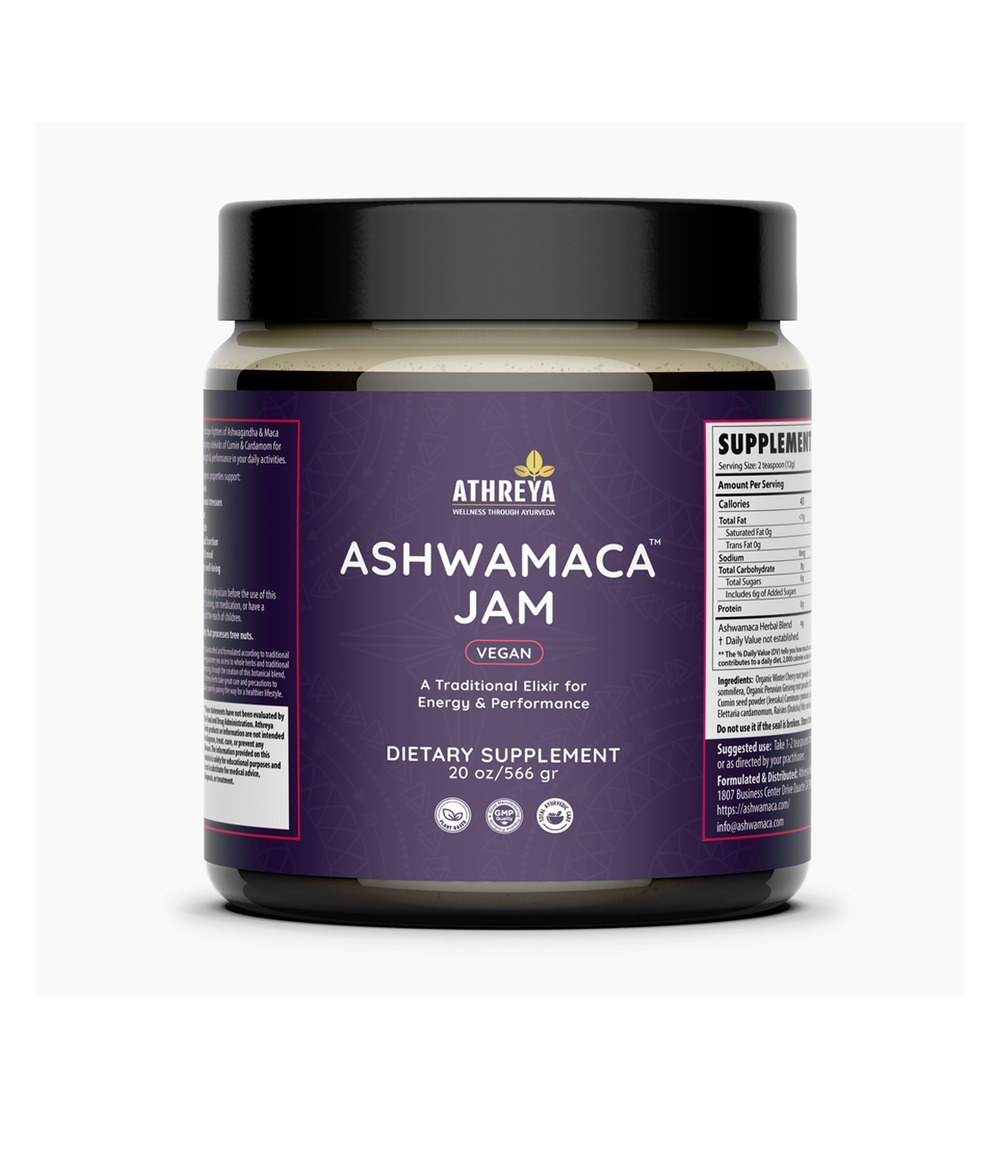 That’s where the Ashwa Maca Latte comes in — a simple, nourishing ritual made with Athreya’s AshwaMaca Jam, a blend designed to restore vitality, calm stress, and promote longevity.