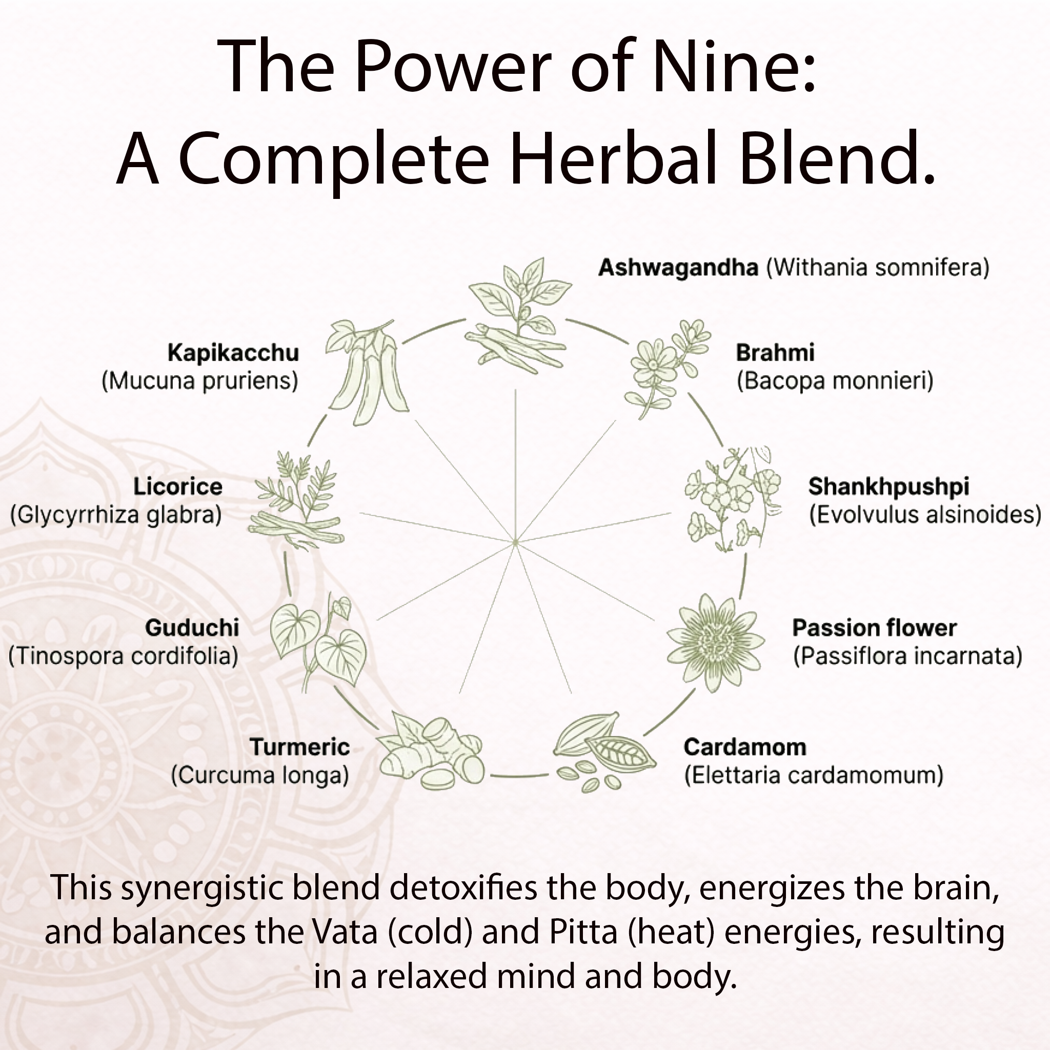 Our Healthy Mind unites Aparajita & Shankhpushpi, known in Ayurveda for synergistically facilitating mental balance, strength, and coordination. To amplify mental functions, this blend uses Ashwagandha for its adaptogenic nature, Bacopa for its nervine action, plus Mucuna seeds, Licorice root, and Tinospora stems for their famed neuroprotective powers