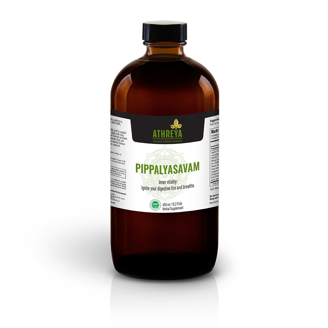Pippalyasavam is a classical Ayurvedic herbal tonic traditionally used to support digestive health, immune function, and respiratory wellness. Made with long pepper (Pippali) and other warming botanicals, this fermented formula promotes healthy metabolism, aids nutrient assimilation, and helps maintain clear and comfortable breathing. It is valued for its ability to encourage internal balance and vitality, especially in individuals with sluggish digestion or seasonal respiratory discomfort.