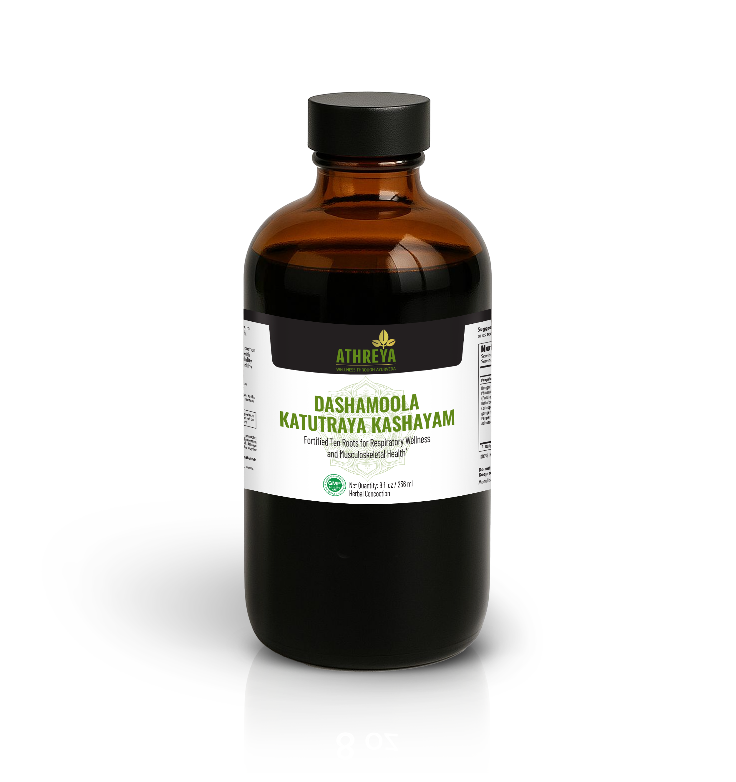 Dashamoola Katutraya Kashaya is a traditional Ayurvedic herbal decoction prepared from the renowned Dashamoola (ten roots) formula blended with ginger, black pepper, and long pepper. In Ayurveda, it is valued for its ability to support respiratory wellness, promote joint comfort, and maintain healthy digestion and metabolism