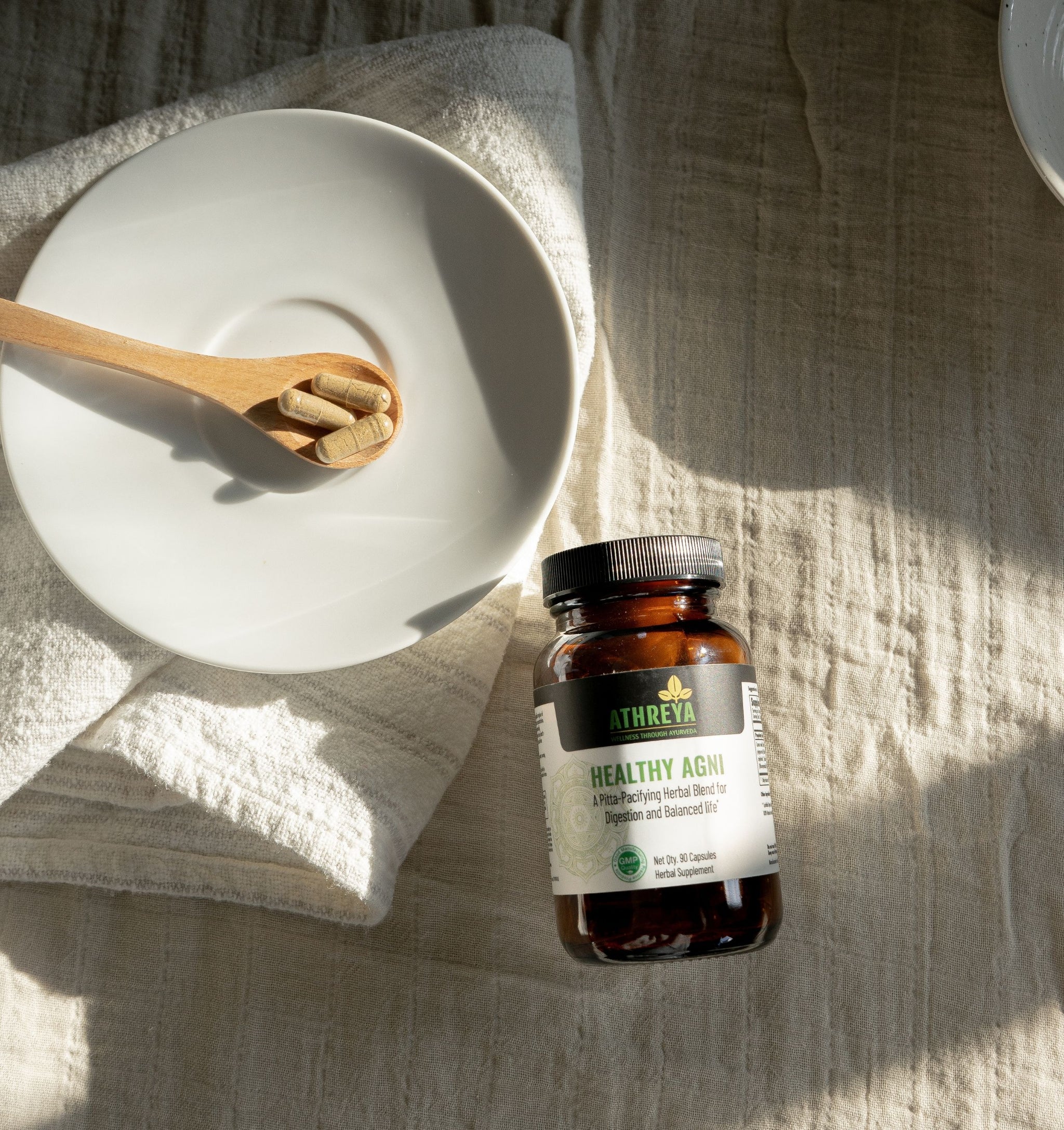 - Each Healthy Agni Capsule contains 400mg of various Ayurvedic herbs that rekindle the digestive fire and prepares the gut for receiving nutrition